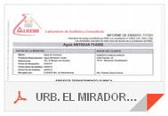 Se pone a disposición de los vecinos los informes de resultados de los analisis del agua de la red de distribución de la Urbanización. Los análisis realizados se ajustan al real decreto 140/2003 por el que se establecen los criterios sanitarios de la calidad del agua de consumo humano.